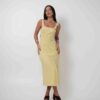 O Vestido Paula Amarelo une feminilidade e modernidade em uma peça cheia de charme. Com modelagem ajustada, ele valoriza a silhueta de forma sofisticada, enquanto o decote quadrado e a parte de trás aberta com elástico franzido adicionam um toque atual e elegante. As alças largas garantem conforto e sustentação.