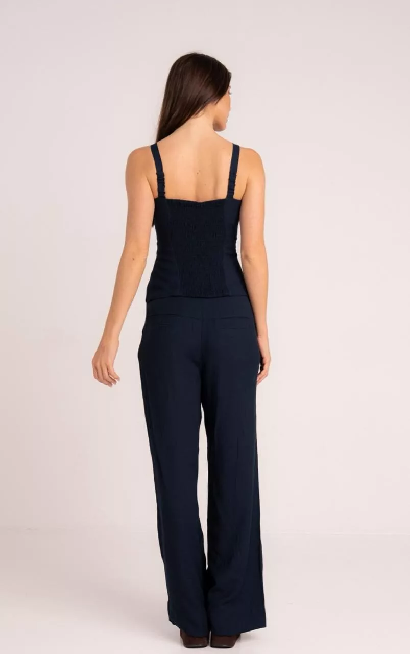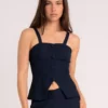 Delicado e versátil, Blusa MarlaAzul Marinho é a escolha ideal para looks elegantes com um toque de frescor. Com alças largas e decote reto, valoriza o colo de forma sutil, enquanto os botões frontais forrados acrescentam um charme clássico ao visual.