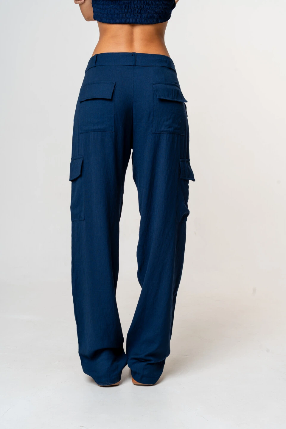 Modelagem: Calça cargo com bolsos laterais e bolsos traseiros