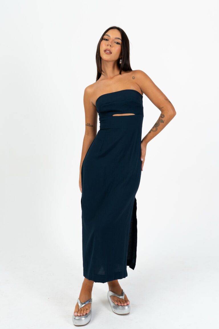 VESTIDO MIDI ELIZA AZUL MARINHO