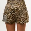 Detalhe: short de cintura média com fechamento de gancho e zíper com bolsos laterais e traseiros