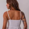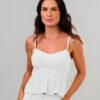 A Blusa Meia Taça Off une feminilidade e leveza em um design moderno e delicado. Com recorte meia-taça no busto e alças finas, ela valoriza o colo com sutileza. O babado na barra traz movimento e um toque romântico à peça.