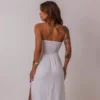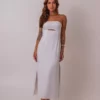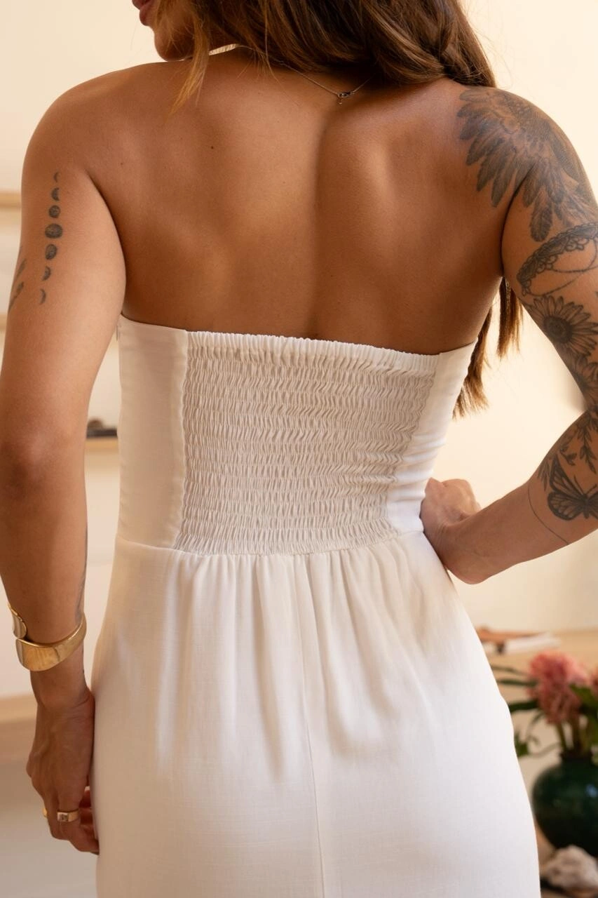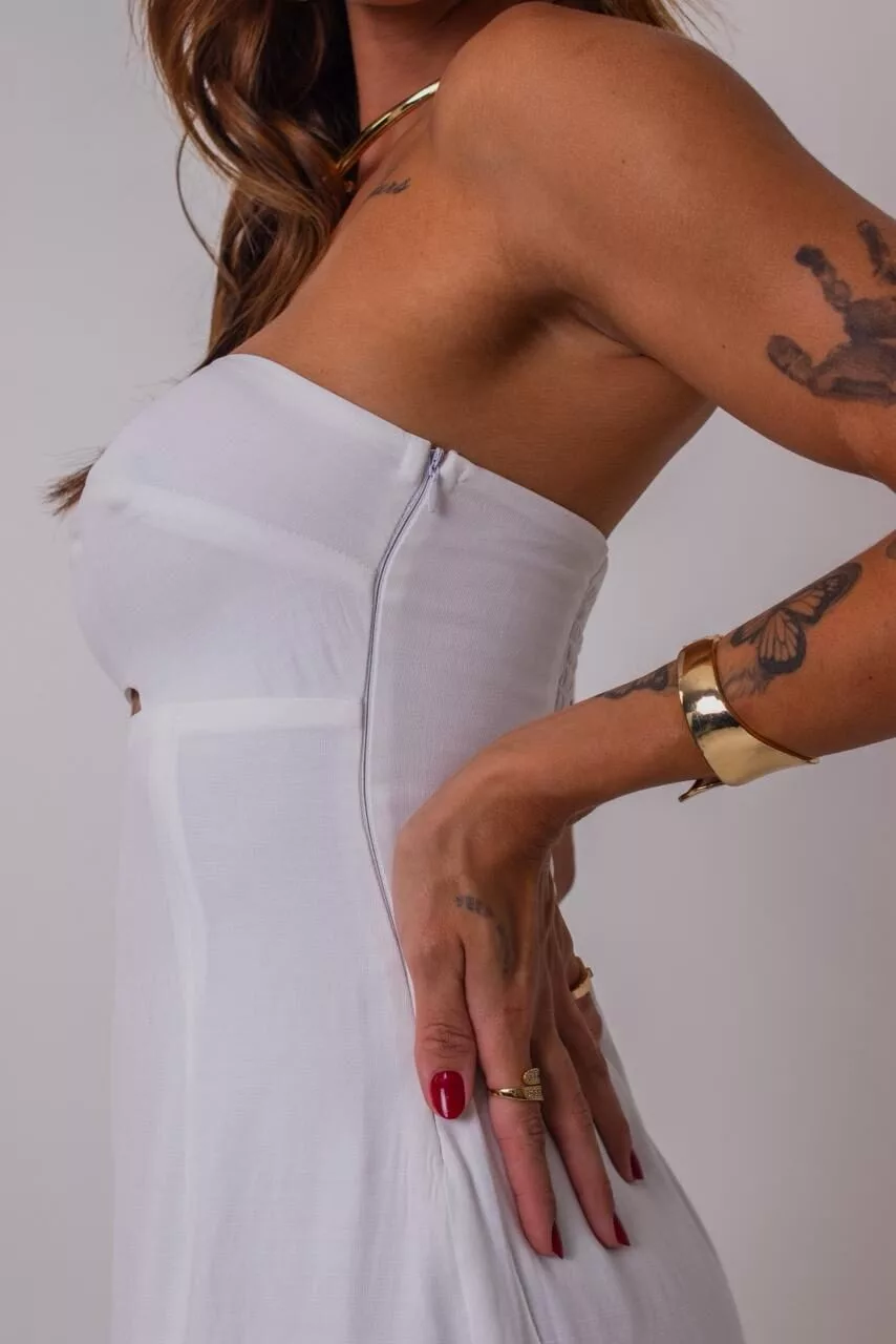 Charmoso e moderno, o Vestido Eliza combina sensualidade e sofisticação na medida certa. Com modelagem tomara que caia e comprimento midi, o modelo valoriza a silhueta com elegância, enquanto o recorte abaixo do busto traz um toque de ousadia sutil e contemporâneo. A fenda lateral adiciona leveza e movimento ao visual, garantindo um caimento fluido e feminino.