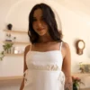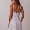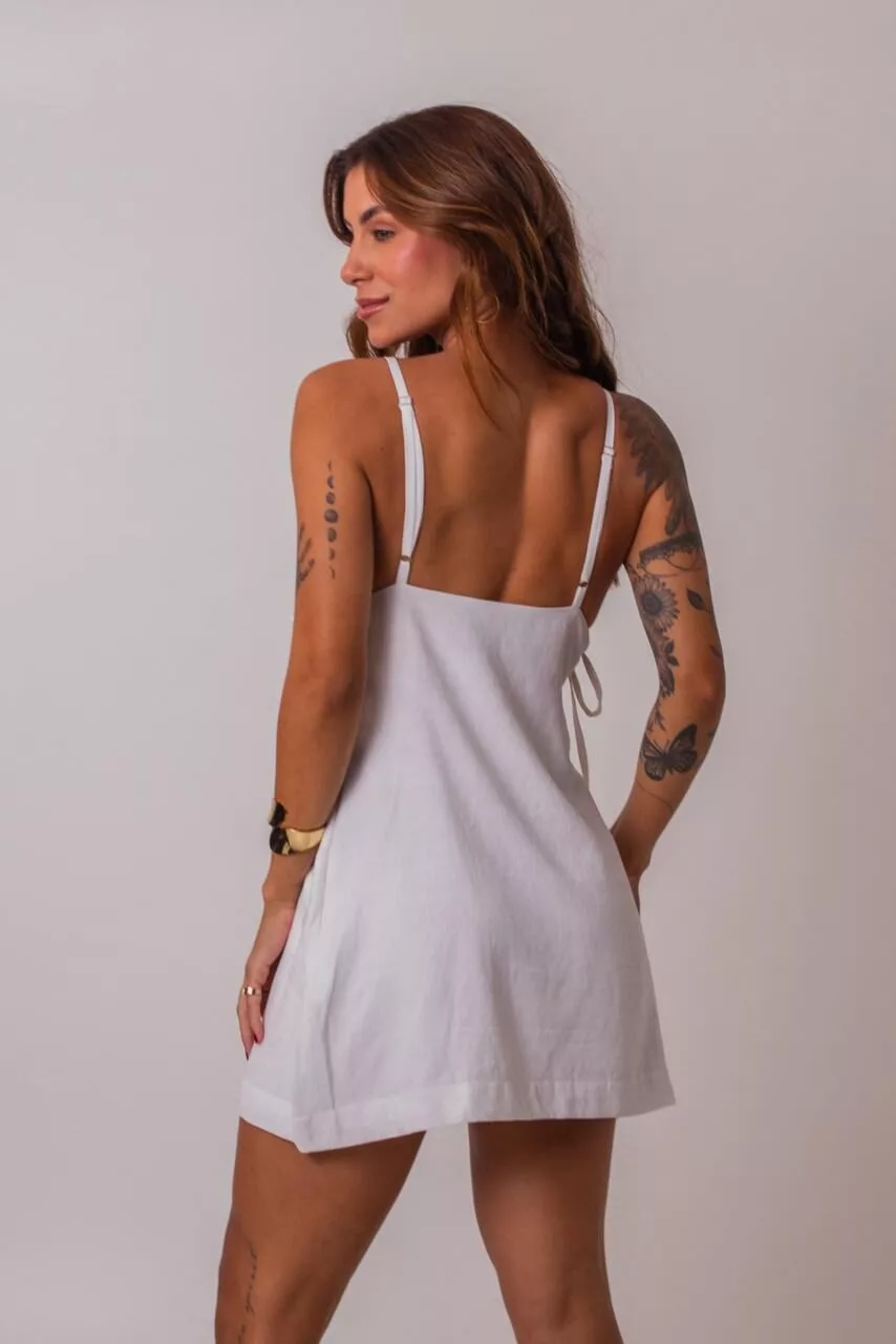 Leve e sofisticado, o Vestido Vitória traduz elegância com um toque de delicadeza. Com alcinhas finas e decote reto, o modelo realça o colo e traz um visual minimalista e atemporal. O caimento solto e o recorte logo abaixo do busto garantem fluidez e conforto, enquanto as amarrações laterais permitem ajustar a peça conforme a silhueta, valorizando o corpo de forma natural.
