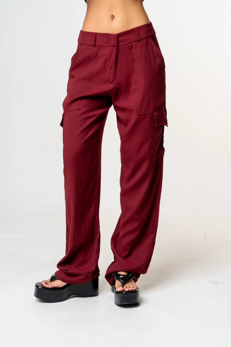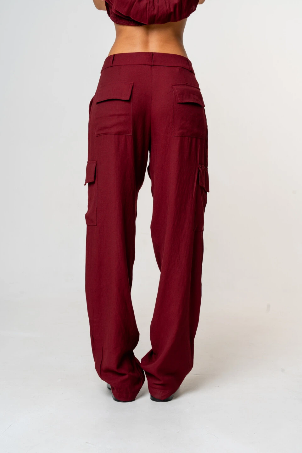 Modelagem: Calça cargo com bolsos laterais e bolsos traseiros