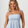 A Blusa Lila é a peça perfeita para quem busca leveza e feminilidade com um toque delicado. Em modelo de alças finas com amarração nos ombros, valoriza o colo e apresenta babado soltinho na barra, trazendo movimento e charme ao visual.