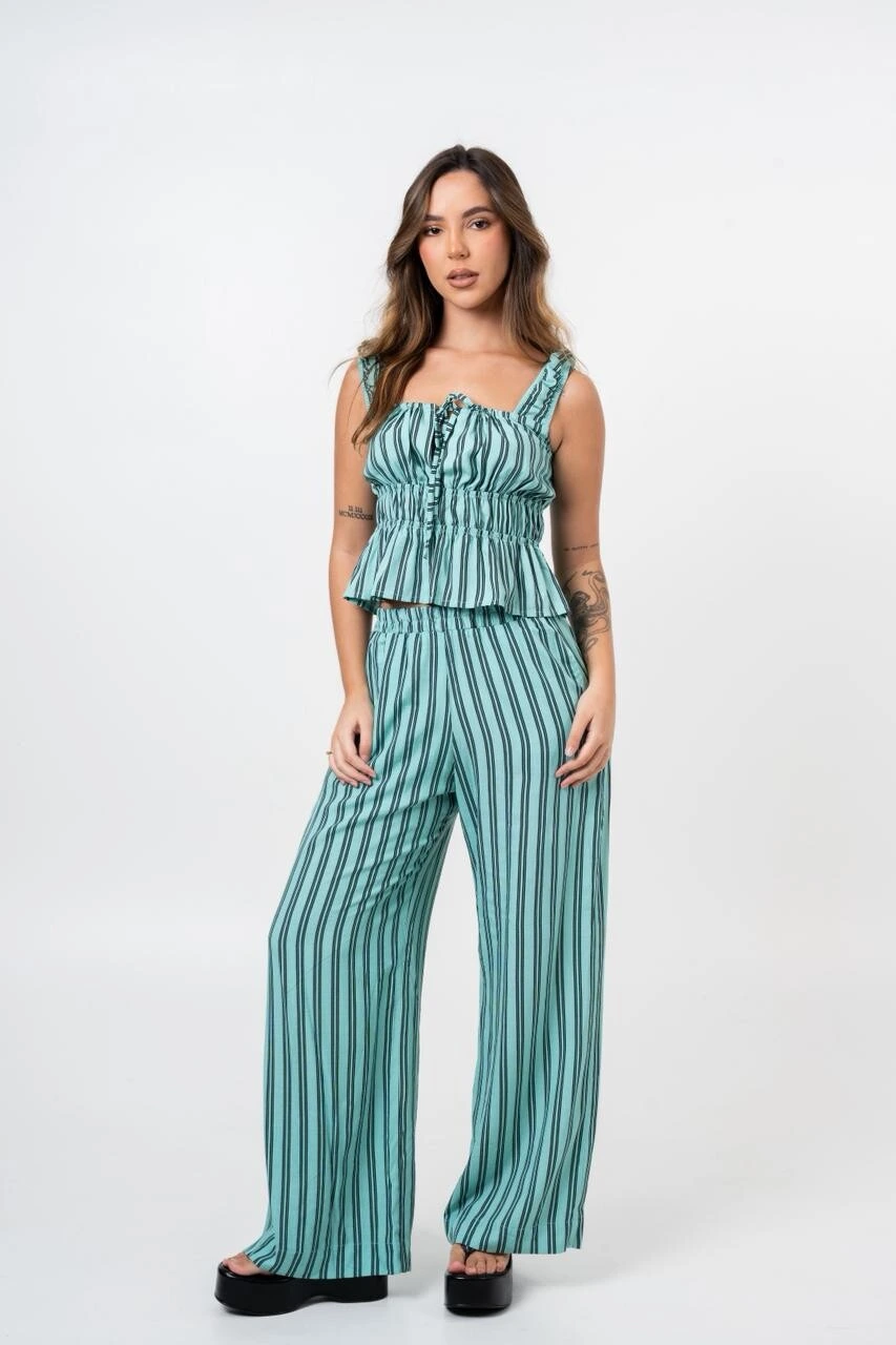 As alças largas com detalhe franzido trazem charme extra à peça, enquanto o laço frontal adiciona um toque delicado e romântico. O babado na barra garante movimento e leveza, tornando a blusa ideal para produções frescas e elegantes.