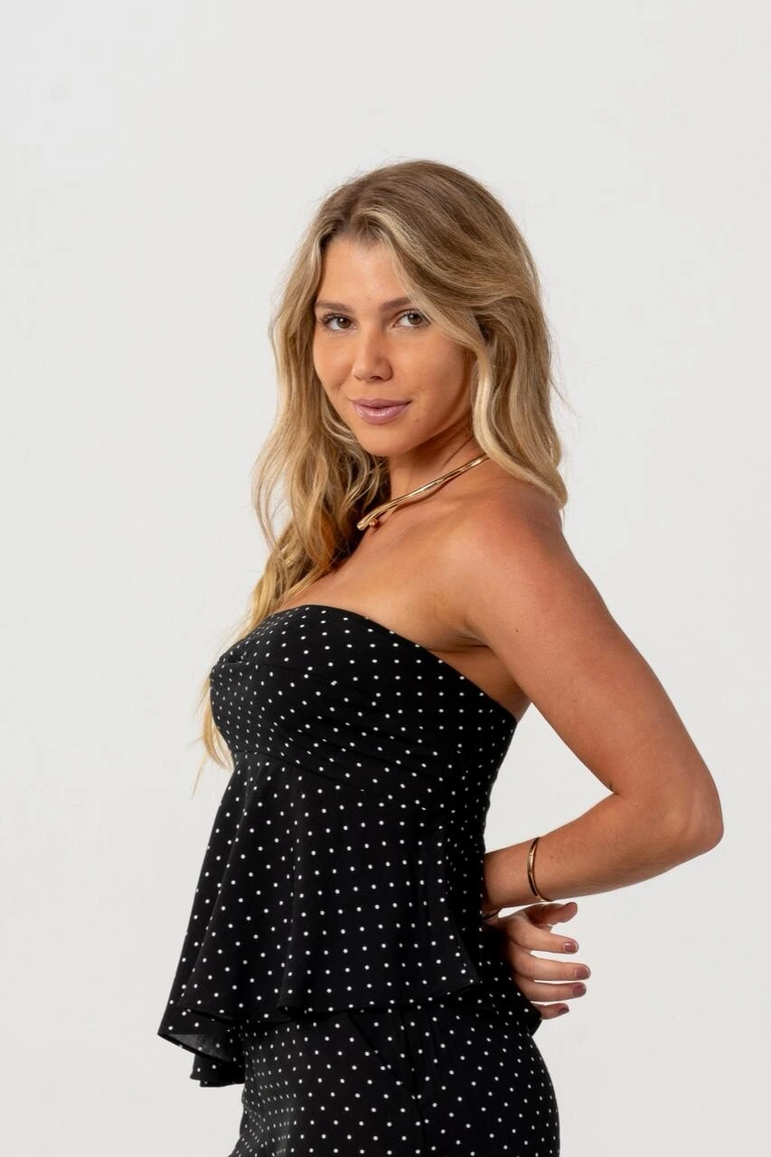 A Blusa Nic Assimétrica é a peça perfeita para quem busca elegância com um toque moderno. Em modelo tomara que caia, valoriza o colo e apresenta babado assimétrico na barra, trazendo movimento e sofisticação ao visual.