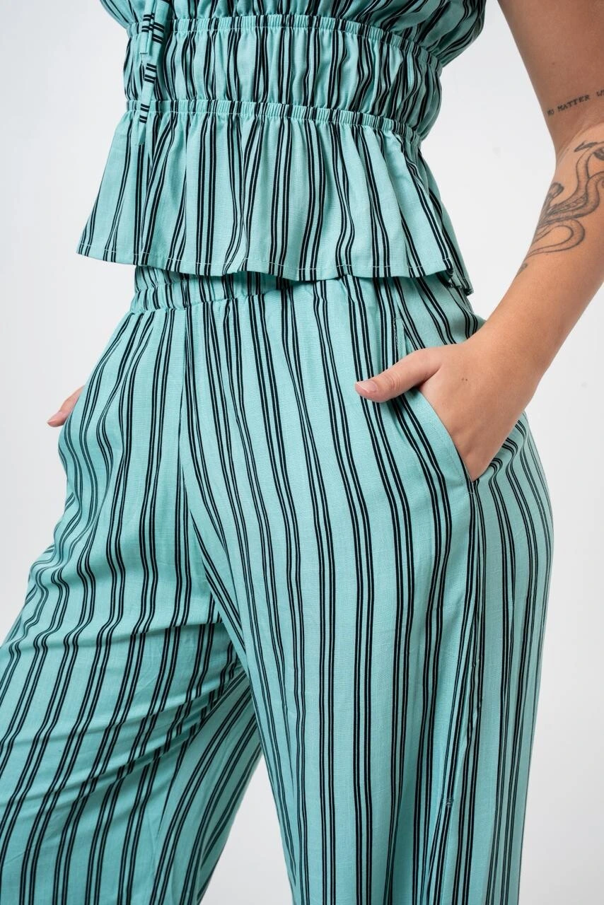 O cós com elástico garante melhor ajuste ao corpo e mais conforto ao vestir, enquanto a estampa listrada alonga a silhueta e traz um toque contemporâneo ao look. Além disso, a peça conta com bolsos laterais funcionais, que agregam pratici
