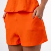 O Short Carol é a peça-chave para composições práticas, leves e cheias de estilo. Com modelagem reta e cintura alta, ele valoriza a silhueta e garante conforto no uso diário. O acabamento com dobra na barra adiciona um toque moderno, enquanto os bolsos laterais funcionais trazem praticidade ao look.