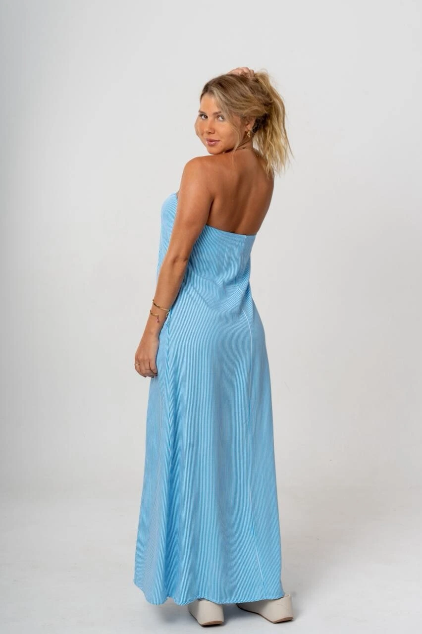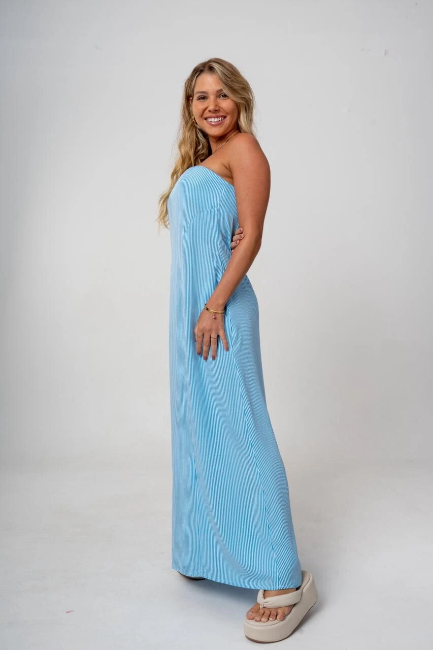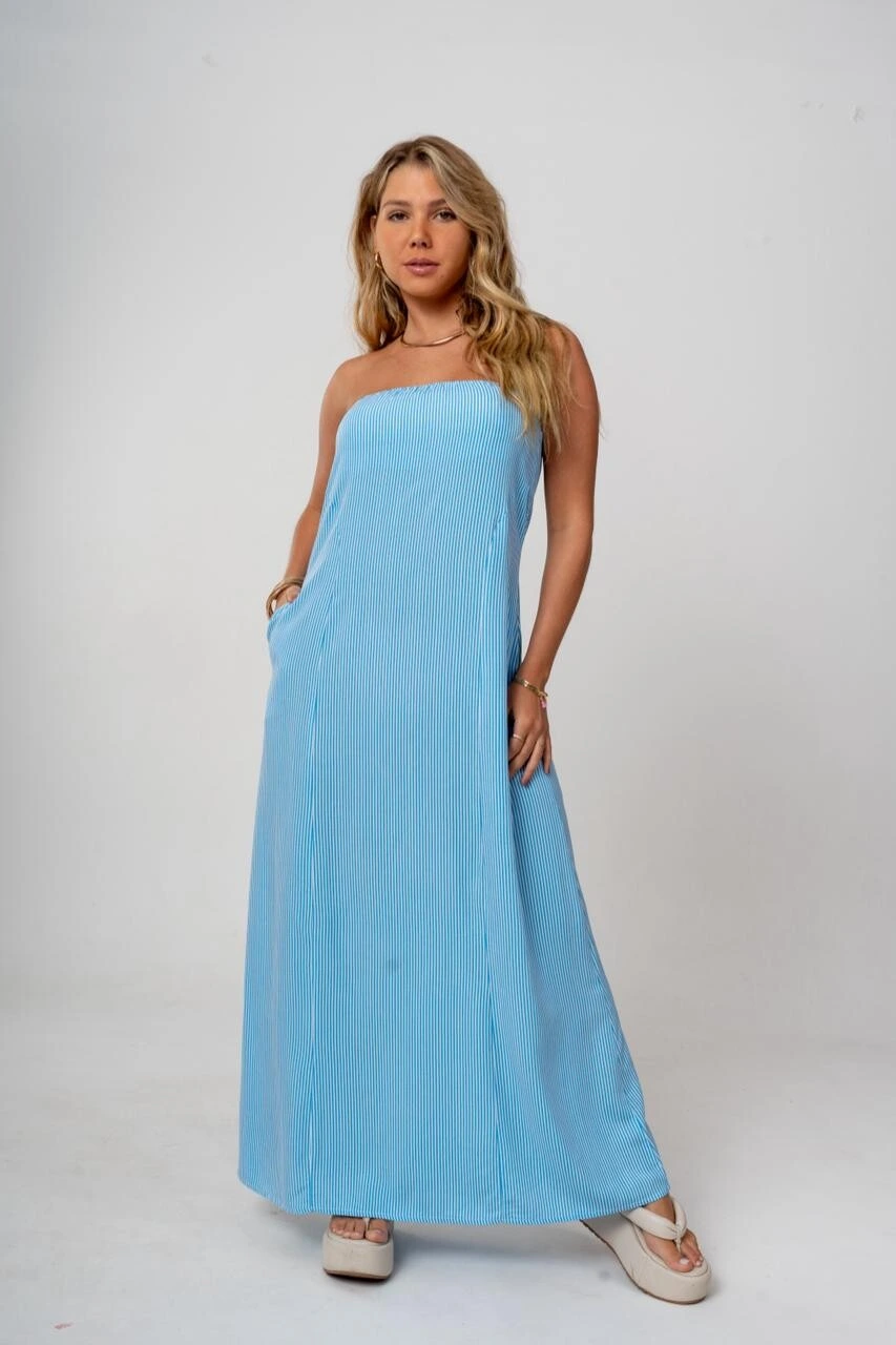 O Vestido Longo Thais é a peça perfeita para quem busca praticidade e elegância com um toque moderno. Em modelo tomara que caia, valoriza o colo e apresenta modelagem reta, trazendo um visual clean e sofisticado.