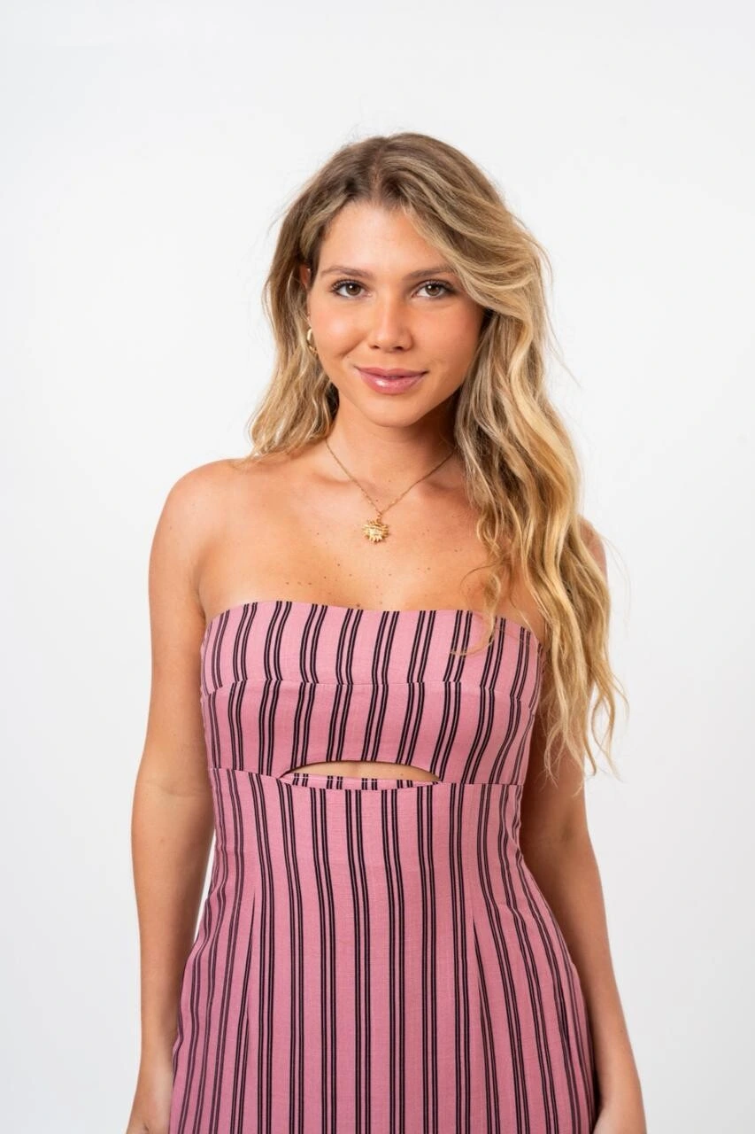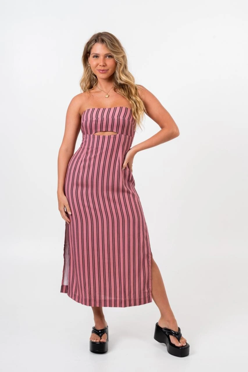 Delicado e moderno, o Vestido Midi Eliza é a escolha ideal para quem busca um visual leve com personalidade. Com decote tomara que caia e recorte frontal na região do busto, trás um toque de feminilidade e frescor.