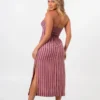 A modelagem justa no busto com saia fluida e fendas laterais garante conforto e movimento, enquanto o zíper invisível na lateral traz praticidade ao vestir.