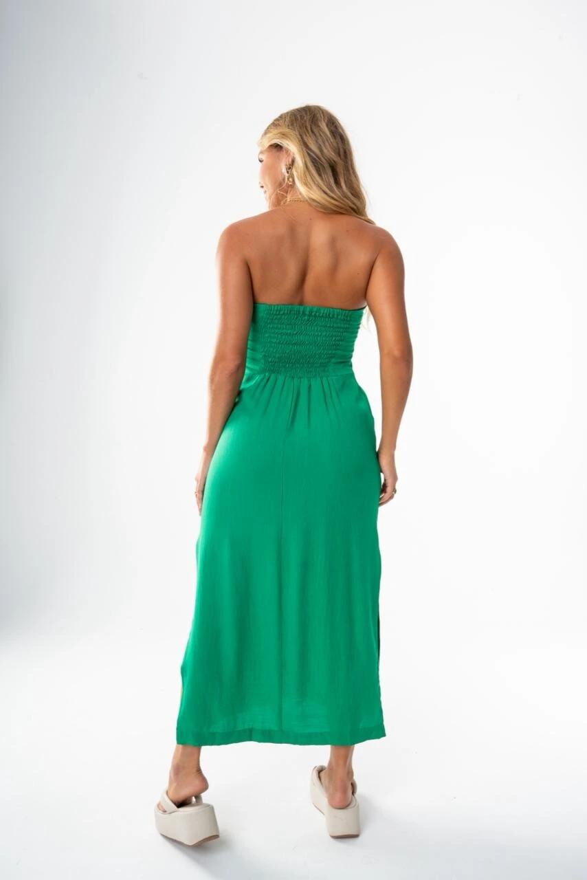 Delicado e moderno, o Vestido Midi Eliza é a escolha ideal para quem busca um visual leve com personalidade. Com decote tomara que caia e recorte frontal na região do busto, trás um toque de feminilidade e frescor.