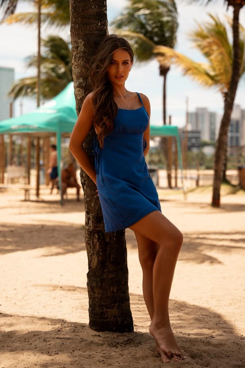 Leve e sofisticado, o Vestido Vitória traduz elegância com um toque de delicadeza. Com alcinhas finas e decote reto, o modelo realça o colo e traz um visual minimalista e atemporal. O caimento solto e o recorte logo abaixo do busto garantem fluidez e conforto, enquanto as amarrações laterais permitem ajustar a peça conforme a silhueta, valorizando o corpo de forma natural.